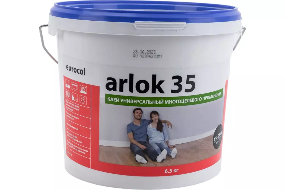 Продукт выпускается в удобной фасовке 6,5 кг, что позволяет использовать его для масштабных проектов. Бежевый цвет клея делает его незаметным под большинством покрытий, сохраняя эстетичный вид пола. Arlok 35 – это надежное решение для профессионального и бытового применения, гарантирующее долговечность и качество результата.
